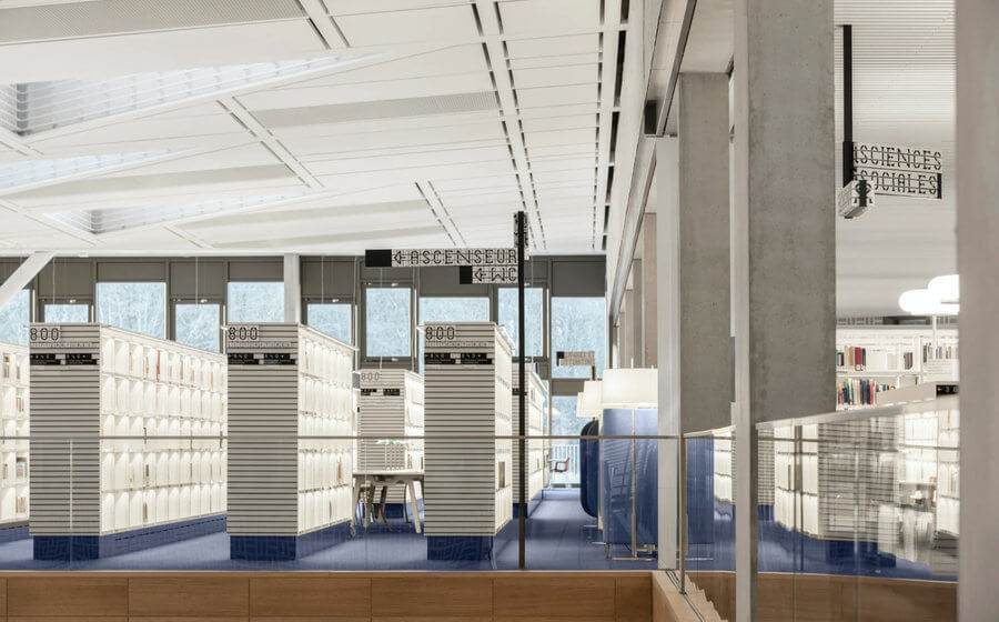 Se hizo un diseño de señalética para la Bibliotheque Nationale Du Luxembourg, el objetivo era que la señalización acentuara la arquitectura del edificio y realzara su belleza.
