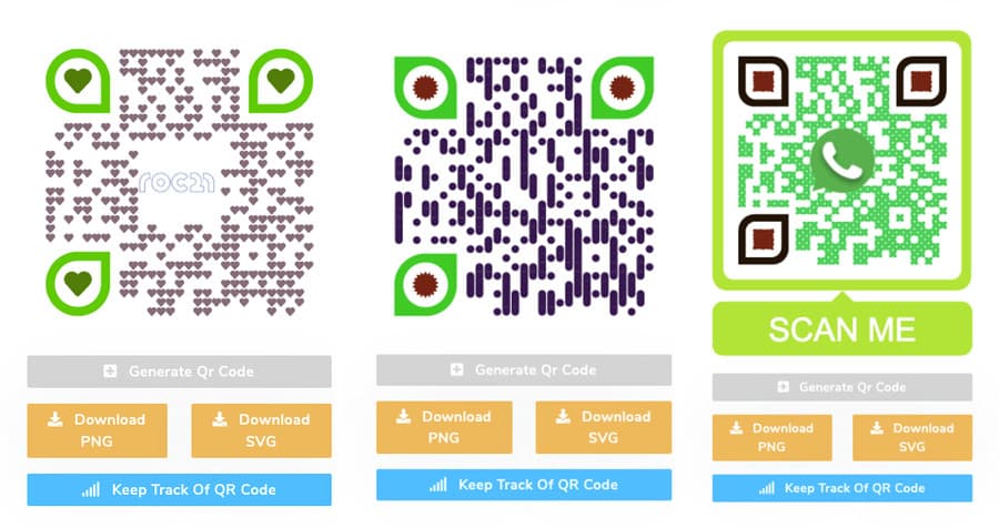 Este generador de códigos QR con logo, es uno de los mejores generadores de códigos personalizados, porque es gratis. La página te permite reemplazar todos los elementos gráficos del diseño del código. Por ejemplo puedes elegir que los elementos gráficos sean redondos,, agregar imágenes, cambiar de color, incluso que esos colores tengan un degradado, hasta puedes agregar corazones y estrellas al código QR.