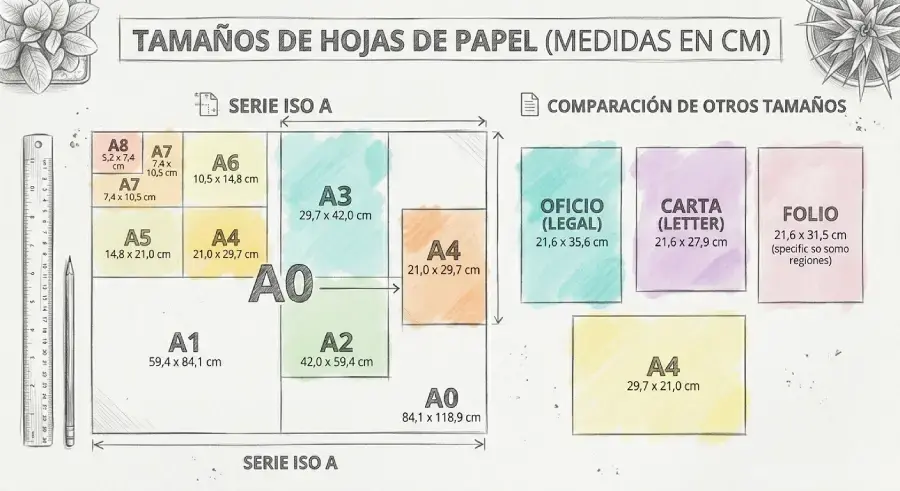 Un error muy común es pensar que A4 y carta son iguales. No lo son. Esa pequeña diferencia puede arruinar márgenes, cortes o alineaciones en impresión.